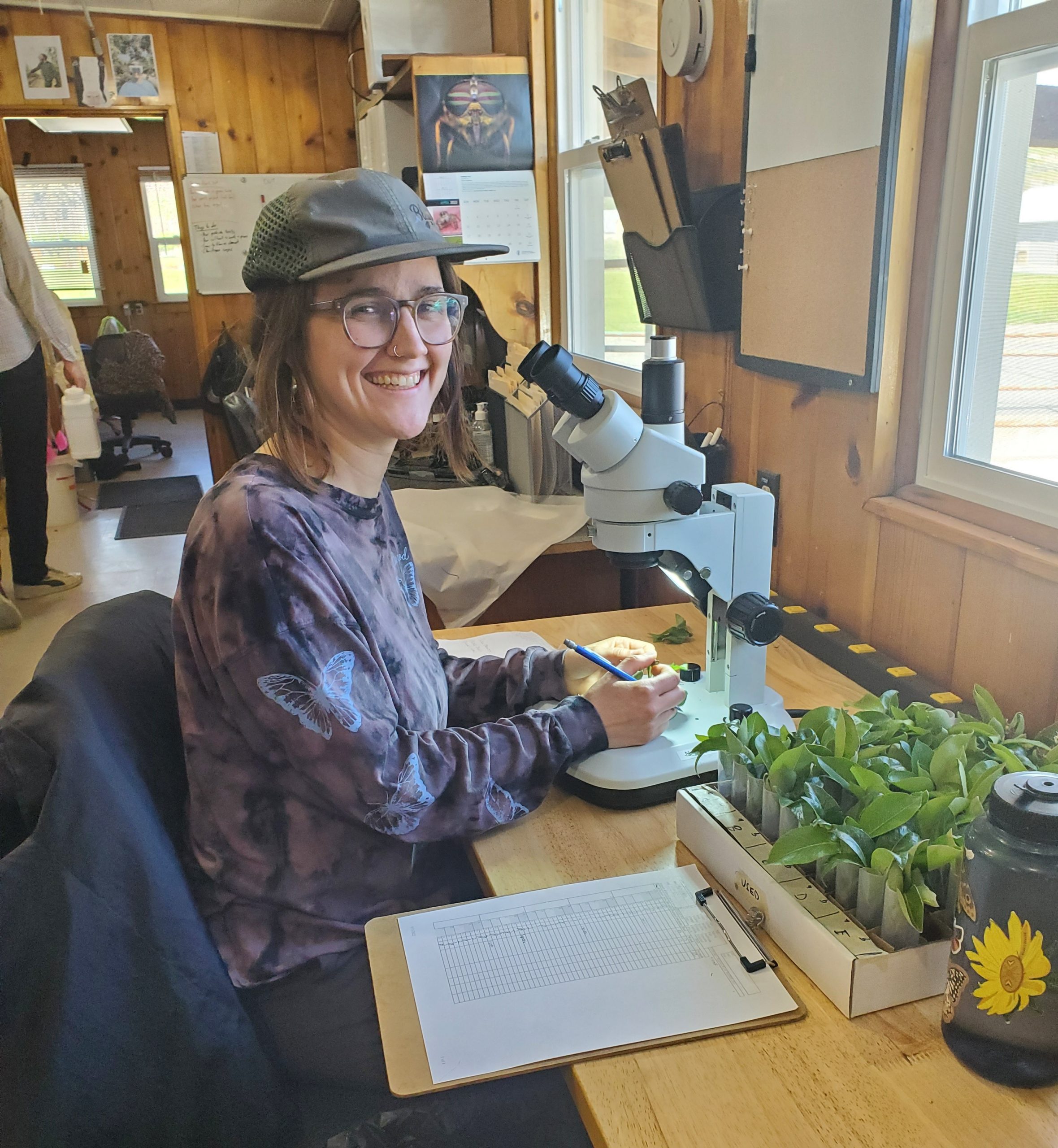 Delany (i.e., Dr. Laney) is a native of Plain Washington – yeah, it’s a place, and it’s not as plain as it sounds!. She grew up doing all sorts of outdoor sports, from rock climbing, to cross country skiing, to snowboarding, to hiking (all are mandatory if you live in Plain). She is also an artist, inspired by the amazing scenery of her hometown. When Delaney is not finding parasitic wasps and bizarre insect eggs under the microscope, she is taking classes at Wenatchee Valley College and helping her friends ID insects on their small farm. We’re so excited to have Delaney with us this summer!